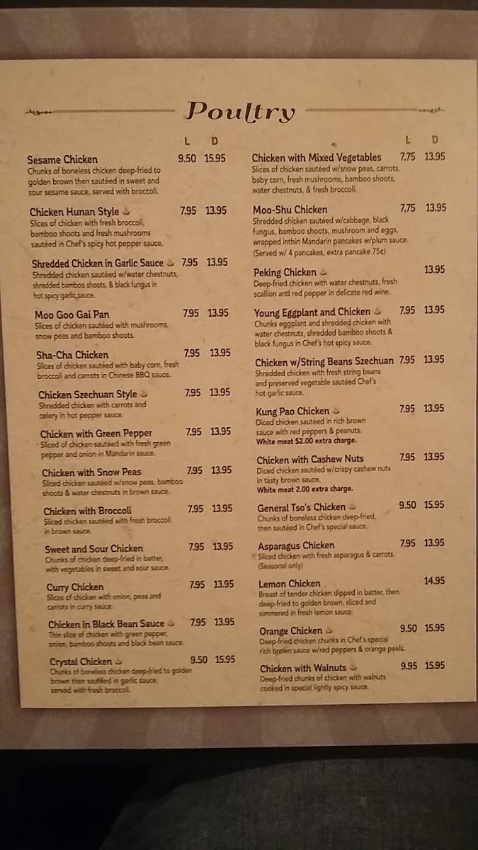 Vegetarians can rejoice in the abundant offerings too—dishes like Sautéed Eggplant in Garlic Sauce and Moo Shu Vegetables are just as delicious, crafted to highlight the freshest vegetables accompanied by the perfect sauces. The Vegetable Delight promises an array of colors and flavors with asparagus, baby corn, and mushrooms that will leave your palate refreshed and satisfied for US$24.10.